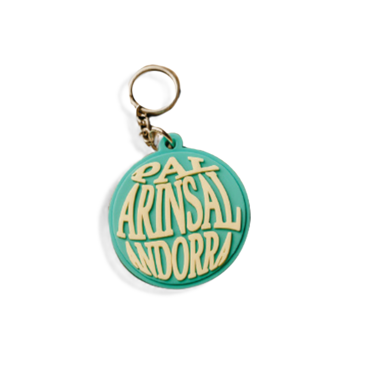 Clauer de PVC resistent amb disseny turquesa i lletres grogues de l’estació d’esquí de Pal Arinsal. Lleuger i perfecte com a record o detall de merxandatge oficial dePal Arinsal.